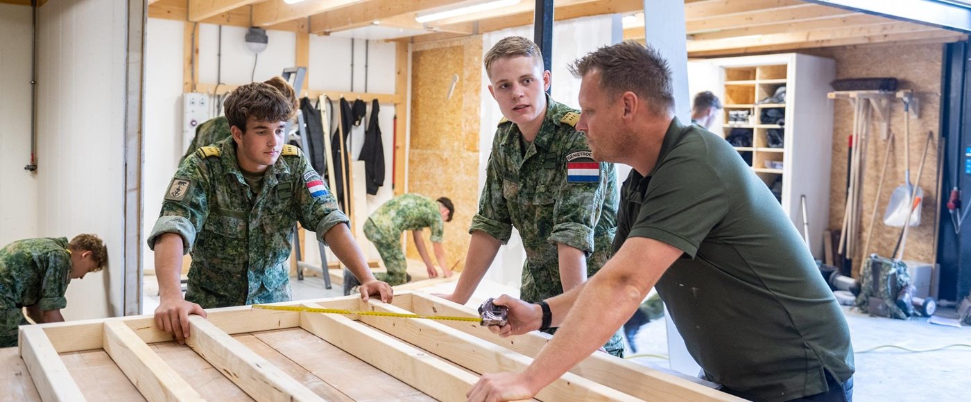 Dít is echt een opleiding voor handige klussers en vaardige vakmensen! Kies je voor de opleiding Allround Vakkracht Bouw? Dan weet jij straks hoe je een deur afhangt, een kraan repareert, een verwarmingsinstallatie instelt… Eigenlijk alles! Het onderhoud van gebouwen op kazernes en het inrichten van legerkampen tijdens oefeningen en uitzendingen: jij bent er straks helemaal in thuis.