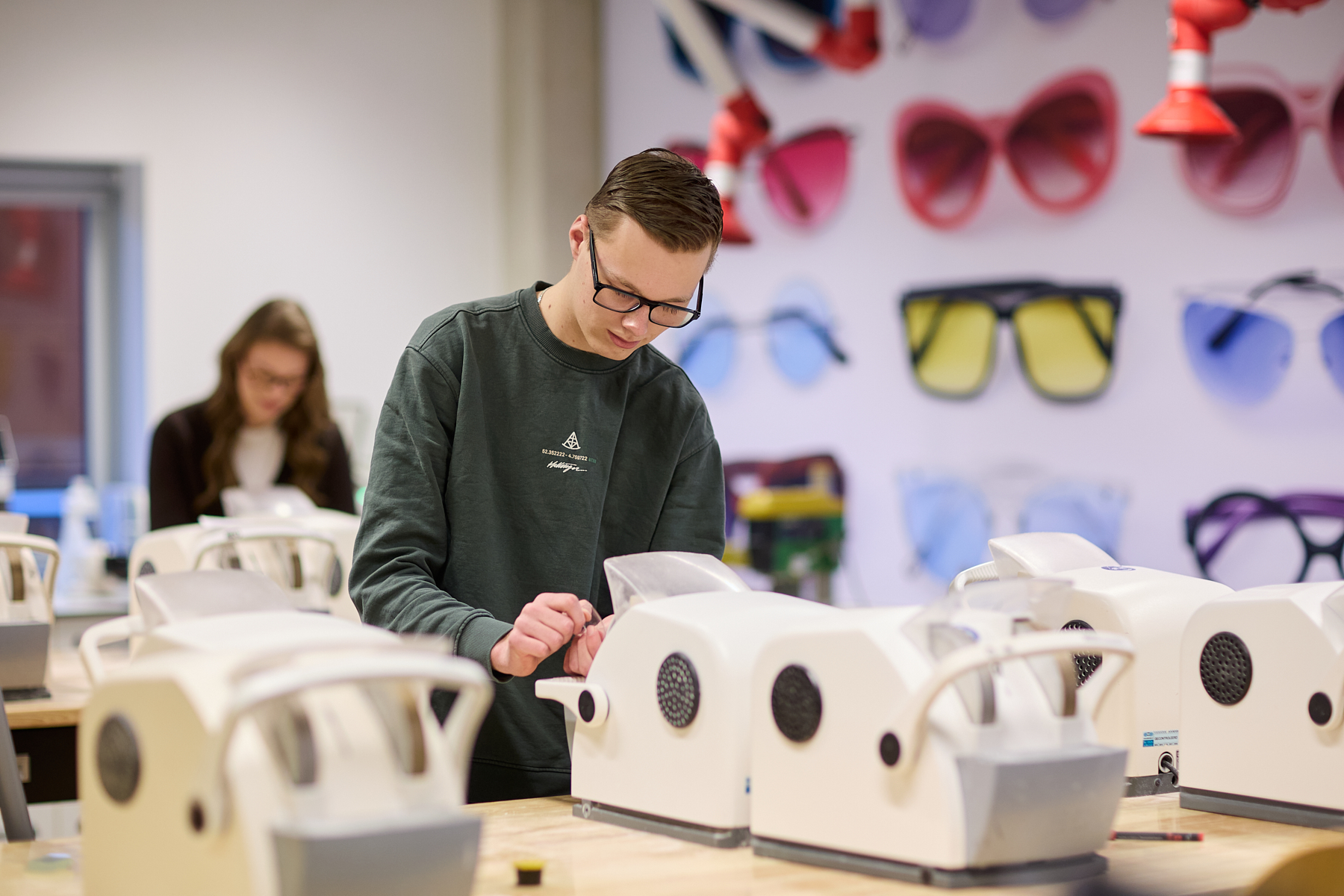 In de loop van de opleiding leer je de klant een goed advies te geven over het juiste montuur en glas. Je geeft contactlensinstructies, herkent ziektebeelden. Je leert vooronderzoek en oogmetingen doen, door werkplekleren. Dat maken we aansprekend en uitdagend door inzet van leertechnologie. Daarbij leer je op ieder moment van de dag van en met elkaar (virtueel). Op die manier blijf jij verantwoordelijk voor je eigen leerproces.