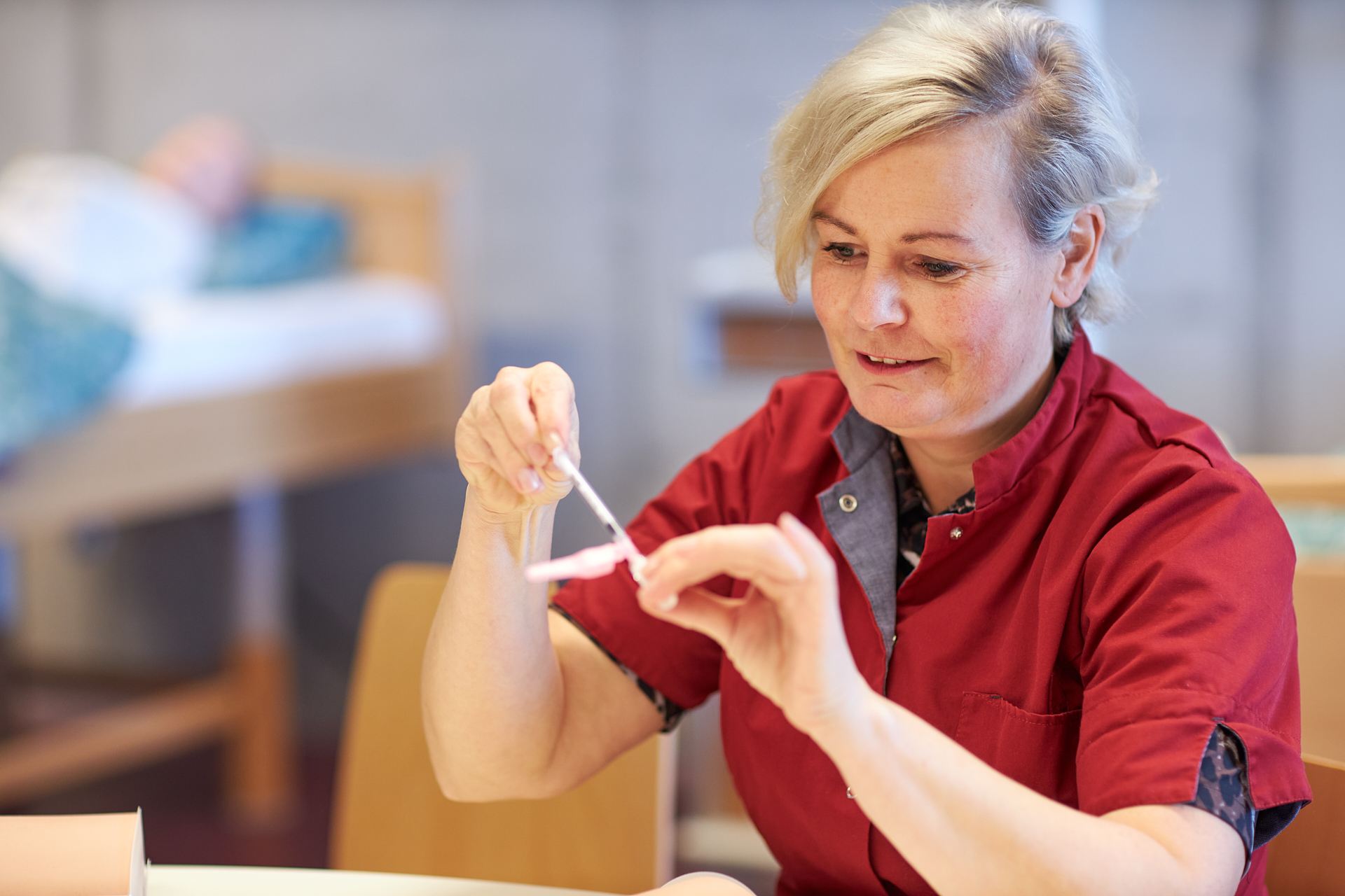 Verena, de gastdocent, komt net van school en toch merkt ze dat ze nu al bij moet blijven, juist in de zorg. “Er verandert zoveel in de zorg en daarnaast moeten we bijblijven met onze verpleegtechnische handelingen. En bijblijven doe ik met plezier. Elke dag leer ik weer en het voor de klas staan, geeft mij de kans om ook een ander vakgebied te ontdekken. Je weet maar nooit.”